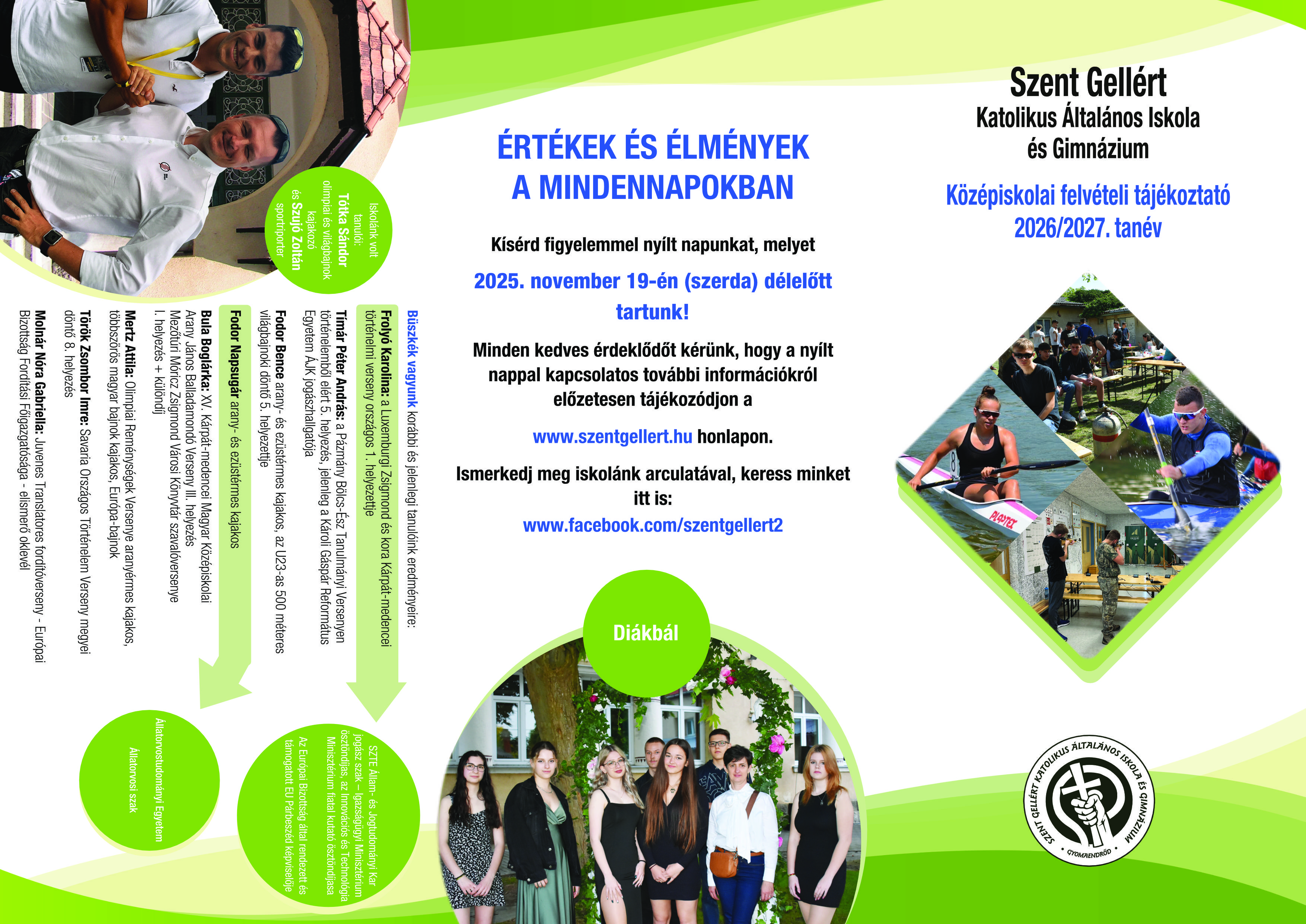 A Szent Gellért Katolikus Általános Iskola és Gimnázium felvételi tájékoztatója